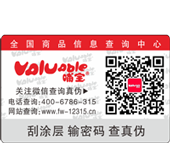 概述:消費者在購買已加入電碼防偽系統的企業所生產的產品時,在產品的包裝上可看到電碼防偽標簽。只要揭開標識的表層或刮開標識的涂層,就可以看到一由16位數字組成的密碼,此密碼是唯一的,只能使用一次,假冒者無法仿造重復使用。